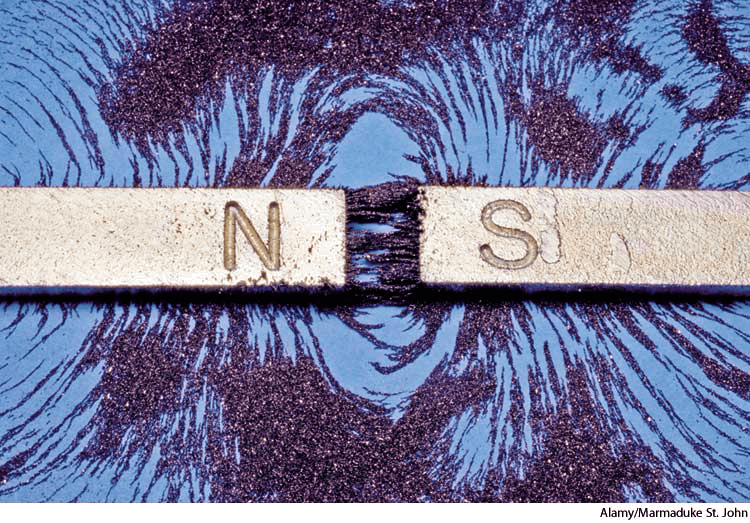 magnetic fieldn.(名词) magnetic fieldiron filings show the magnetic field surrounding opposite poles- A condition found in the region around a magnet or an electric current, characterized by the existence of a detectable magnetic force at every point in the region and by the existence of magnetic poles.磁场:一种发生在磁体或者电流四周区域中的情形,其特点是在这个区域中的每一个点都存在着可测试到的磁力,并且存在着磁极