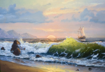 A painting of a marine landscape.