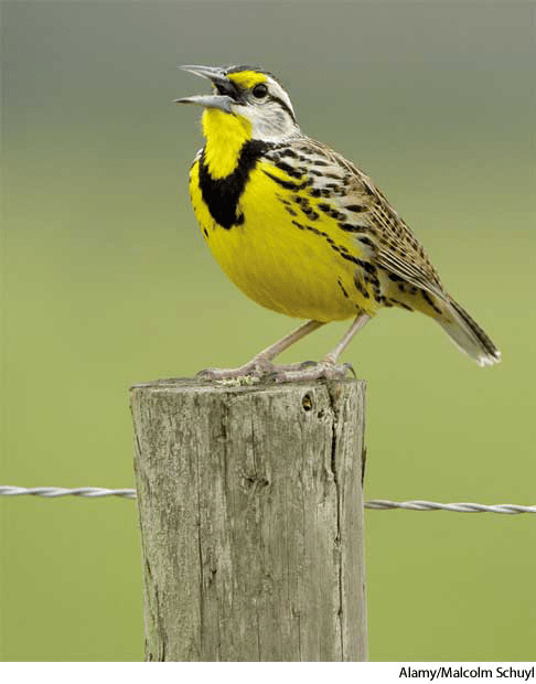 mead·ow·lark AHD[mĕdʹō-lärk'] D.J.[ˈmedəʊˌlɑːk]K.K.[ˈmɛdoˌlɑrk]n.(名词) meadowlarkEastern meadowlark Sturnella magna- Any of various songbirds of the genusSturnella of North America, especially S. magna, the eastern meadowlark, and S. neglecta, the western meadowlark, having brownish plumage, a yellow breast, and a black crescent-shaped marking beneath the throat. 草地鹨:一种产于北美洲的草地鹨 属鸣鸟,尤指东部草地鹨的 东美草地鹨, 和西部草地鹨的 西美草地鹨 ,长有深褐色羽毛,胸部为黄色,喉部下面有黑色新月形标记
