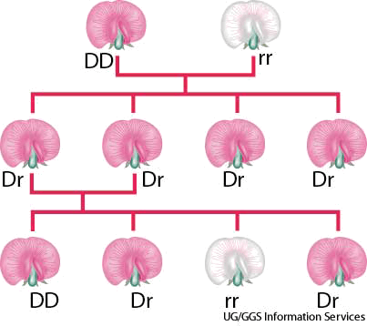 释义 Men·del's law AHD[mĕnʹdlz] D.J.[ˈmendlz]K.K.[ˈmɛndļz]n.(名词)Mendel's lawMendel's First Law: When a plant with two dominant (DD) alleles is crossed with a plant having two recessive (rr) alleles (top row), the first generation of plants (middle row) will all have one dominant and one recessive (Dr) allele. In the second generation (bottom row), on average one of four plants will have two recessive alleles.