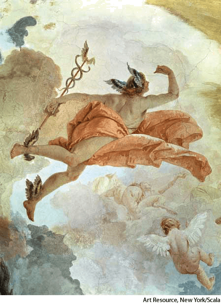 mer·cu·ry AHD[mûrʹkyə-rē] D.J.[ˈmɜːkjəriː]K.K.[ˈmɝkjəri]n.(名词)   Mercurytop: detail from a ceiling fresco by Giovanni Battista Tiepolobottom: false-color image of the planet Mercury- Symbol Hg A silvery-white poisonous metallic element, liquid at room temperature and used in thermometers, barometers, vapor lamps, and batteries and in the preparation of chemical pesticides. Atomic number 80; atomic weight 200.59; melting point -38.87°C; boiling point 356.58°C; specific gravity 13.546 (at 20°C); valence 1, 2. Also called quicksilver See table at element 符号 Hg 水银,汞:一种银白色有毒金属元素,室温下呈液态,用于温度计、气压计、蒸气灯及电池中,也用于化学杀虫剂中。原子序数为80;原子量为200.59;熔点-38.87°C;沸点为356.58°C;比重为13.546(20°C时);化合价为1,2 也作 quicksilver 参见 element