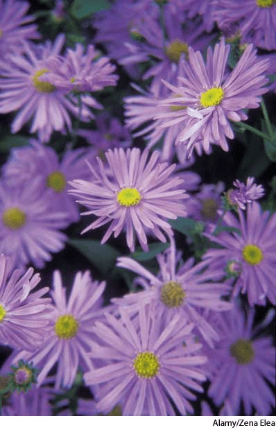 1. Any of various plants of the genusAster in the composite family, having radiate flower heads with white, pink, or violet rays and a usually yellow disk. 紫菀属植物:一种菊科紫菀 属的植物,有带白、粉、或蓝紫色伞形放射状头状花序,花盘一般为黄色