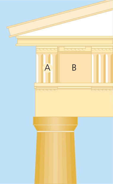 1. Any of the spaces between two triglyphs on a Doric frieze.三槽板间平面:陶立克柱式雕带上两个三联浅槽间的空间