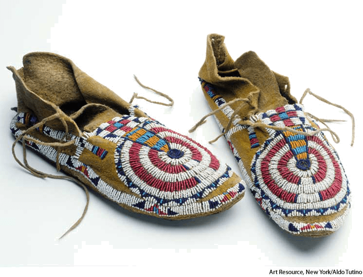 moc·ca·sin AHD[mŏkʹə-sĭn] D.J.[ˈmɒkəsɪn]K.K.[ˈmɑkəsɪn]n.(名词) moccasinlate 19th-century to early 20th-century Cheyenne beaded moccasins- A soft leather slipper traditionally worn by Native Americans.印第安软皮鞋:一种传统上由美洲土著穿的软皮便鞋