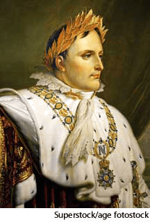 Na·po·le·on I AHD[nə-pōʹlē-ən, -pōlʹyən] 原名 拿破仑·波拿巴 称作 “小个子”(1769-1821) D.J.[nəˈpəʊliːən, -ˈpəʊljən]K.K.[nəˈpoliən, -ˈpoljən]NONE(无词性) Napoleon Iportrait by Anne-LouisGirodet de Roussy-Trioson(1767-1824)- Emperor of the French (1804-1814). A brilliant military strategist, he deposed the French Directory (1799) and proclaimed himself first counsel and, later, emperor (1804). His military and political might gripped Continental Europe but failed to encompass Great Britain. After a disastrous winter campaign in Russia (1812), he was forced to abdicate by a coalition of French marshals (1814). Having been exiled to the island of Elba, he escaped, briefly regained power, and was ultimately defeated at Waterloo (1815) and exiled for life to the island of St. Helena. His codification of laws, the Napoleonic Code, still forms the basis of French civil law.拿破仑一世:法国皇帝(1804-1814年),伟大的军事战略家,他废除了法国督政官(1799年)并宣布自己为第一执政,后来称帝(1804年)。他的军队和政治力量在欧洲大陆所向无敌但在围攻大不列颠遭受失败。在俄国经历了一场苦难的冬季战争后(1812年),在法国元帅联盟的压力下,他被迫放弃政权(1814年)。被驱逐至厄尔巴岛后,不久他逃离并再度短暂掌权,在滑铁卢战役遭到惨败(1815年),流放于圣赫勒拿岛。他的法规汇编,拿破仑法典,至今仍是法国民法的基础