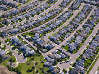 Aerial view of a modern neighborhood.
