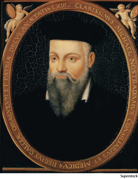 Nos·tra·da·mus AHD[nŏs'trə-dāʹməs, -däʹ-, nō'strə-] 原名 米哈伊·诺特勒达穆(1503-1566) D.J.[ˌnɒstrəˈdeɪməs, -ˈdɑː-, ˌnəʊstrə-]K.K.[ˌnɑstrəˈdeməs, -ˈdɑ-, ˌnostrə-]NONE(无词性) Nostradamusc. 1614 portrait by his son César (1553?-1630?)- French physician and astrologer who wroteCenturies (1555), a book of prophecies. 诺斯卑达穆斯:法国医生和占星家,写了《世纪连绵》 (1555年),一本预言书