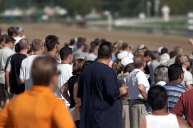 Numerous people at a race track.