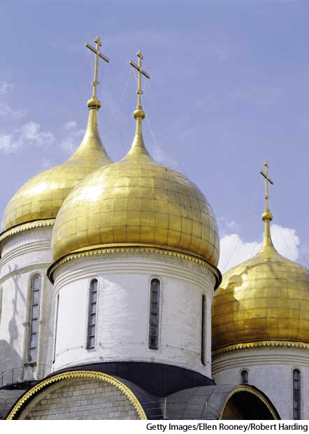洋葱圆顶:尖球根状的类圆顶建筑物,尤其常见于俄罗斯部分地区与东欧