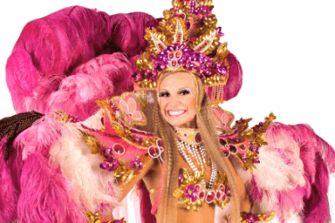 A carnival dancer wearing an ornate costume.