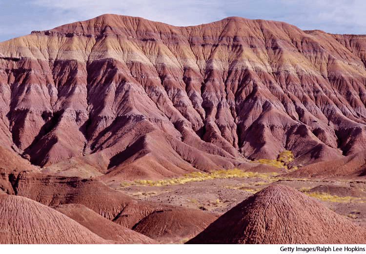 Paint·ed Desert AHD[pānʹtĭd] D.J.[ˈpeɪntɪd]K.K.[ˈpentɪd]NONE(无词性) Painted DesertPetrified Forest National Park, Petrified Forest, Arizona- A plateau region of north-central Arizona east of the Colorado and Little Colorado rivers. Irregularly eroded layers of red and yellow sediment and clay have left striking bands of color.彩色沙漠:亚利桑那北部中心的一个高原地区,在科罗拉多和小科罗拉多河的东部,有无规则侵蚀的红色和黄色沉积物表层和泥土,留下了引人注目的色彩带