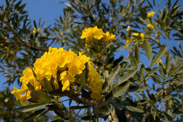 A yellow panicle of a Tabebuia aura tree.