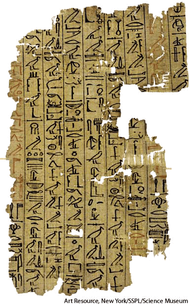 - A document written on this material.纸莎纸卷轴:写在这种材料上的文献