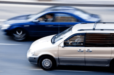 One car passes another.