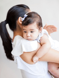 A mom gently pats her baby's back.
