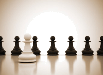 A row of pawn chess pieces.