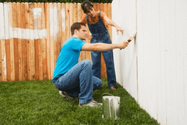 The pernickety woman instructs her husband on the right way to paint a fence.