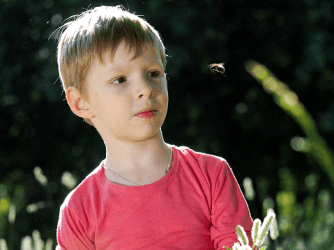 The bee was being a pest because it wouldn't stop circling around the boy's head.