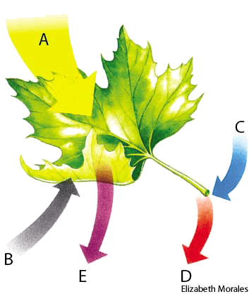 释义 pho·to·syn·the·sis AHD[fō'tō-sĭnʹthĭ-sĭs] D.J.[ˌfəʊtəʊˈsɪnθɪsɪs]K.K.[ˌfotoˈsɪnθɪsɪs]n.(名词)photosynthesisA. sunlight is absorbed by chlorophyll in a leafB. carbon dioxide is taken in from the airC. water is transported from the rootsD. glucose is synthesized and distributed throughout the plantE. oxygen is released