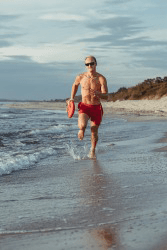 The lifeguard is skilled at running plus swimming.