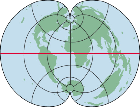 pol·y·con·ic projection AHD[pŏl'ē-kŏnʹĭk] D.J.[ˌpɒliːˈkɒnɪk]K.K.[ˌpɑliˈkɑnɪk]n.(名词) Clarinda/Academy Artworks- A conic map projection having distances between meridians along every parallel equal to those distances on a globe. The central geographic meridian is a straight line, whereas the others are curved and the parallels are arcs of circles.多圆锥投影:一个圆锥形的地图投影,在地球仪上,沿着每条纬线的子午线间的距离都与它们之间的距离相等。中央地理子午线是一条直线,而其它的子午线则是弯曲的,纬线是圆形的弧线