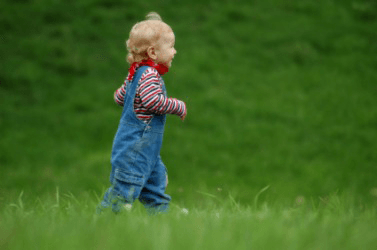 A young bairn, or child, running.