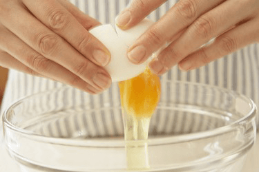 Breaking an egg into a bowl is part of the procedure when making scrambled eggs.