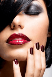 The model has pronounced make-up.