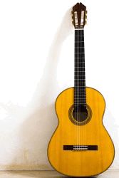 The guitar is propped against the wall.