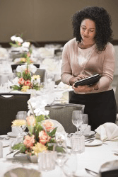 The punctilious wedding planner made sure that every table was set properly.