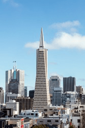 The Transamerica pyramid and skyline in San Francisco, California.