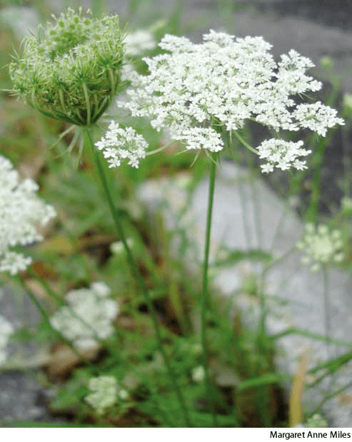 Queen Anne's lace AHD[ănz] D.J.[ænz]K.K.[ænz]n.(名词) Queen Anne's laceDaucus carota subsp. carota- A widely naturalized Eurasian herb(Daucus carota var. carota) having white, nonfleshy, fusiform compound umbels of small white or yellowish flowers. Also called wild carrot 野胡萝卜:在欧亚分布广泛野生的草本植物(野胡萝卜 变种 胡萝卜) ,开白色或黄色小花,有白色、无肉质和纺锤形的复伞形花序 也作 wild carrot