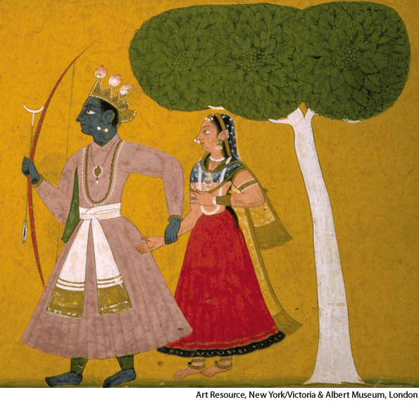 c. 1720 Indian gouache painting of Rama (right) and his wife Sita (left)