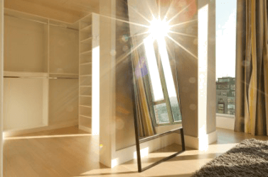Rays of sunlight coming through a window.