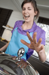 She reacted by pulling her hand away quickly when she touched the hot lid.