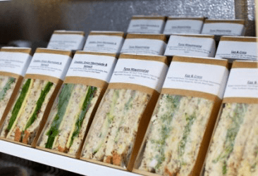 A row of ready-made sandwiches.