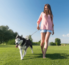 Nicole takes her Siberian Husky to the dog park for recreation.