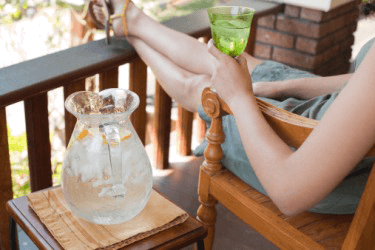 A relaxing Saturday afternoon spent sipping ice-cold lemon water on the front porch allows Cheryl to recuperate after a stressful work week.