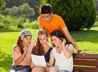 Lisa and her friends carefully read the letter regarding her acceptance to the college that she applied to at the beginning of her senior year in high school.