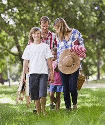 The Neilsen's decided to eat a picnic lunch in the park because it was relatively cool that day compared to the day before.