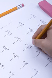 Troy took his time finding the remainder of the subtraction problems on the math worksheet.