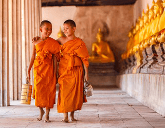 The young monk apprentices are at peace with their renunciation of material possessions in order to attain spiritual enlightenment.
