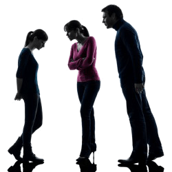 A daughter under reproach from her parents.