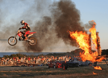 The motorcyclist received mild burns as a result of improperly planning for the stunt.