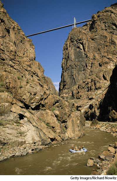 1. A long, narrow canyon formed by the Arkansas River in south-central Colorado. Its near-vertical walls are more than 305 m (1,000 ft) high. The gorge was discovered by Zebulon Pike's expedition in 1806.罗亚尔峡谷:美国科罗拉多中南部阿肯色河形成的狭长峡谷。几乎垂直岸壁有305米(合1,000英尺)多高。这个峡谷是1806年泽布伦·派克在探险时发现的
