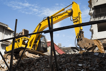A large pile of rubble has accumulated as a result of the demolition of the building.