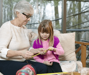 Emily's grandmother is teaching her the rudiments of knitting by first showing her how to cast-on.