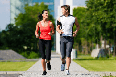 A couple out for a run.
