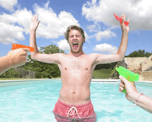 The girls launched a surprise sally on Trey after he soaked them first with a water gun while they were relaxing by the pool.