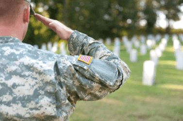 A soldier gives a salute to fallen comrades.